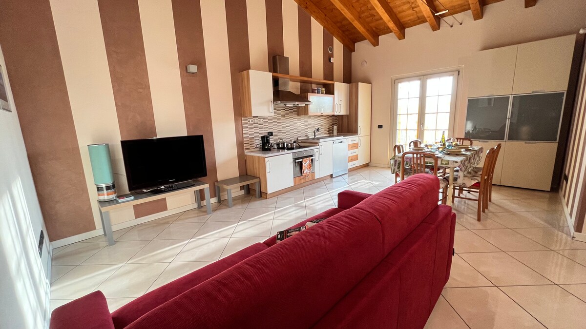 Garda Tranquil Escape - perfect place for autumn and winter holidays, a cozy retreat just a 10-minute walk from Lake Garda, lovingly created by us! Discover this charming apartment in a condo with a swimming pool and private gardens. It’s conveniently located close to Lake Garda, a children’s playground, and a supermarket. You’ll have easy access to the historical centers of Desenzano and Sirmione (12’ by car). Enjoy free parking (indoor and outdoor), with bus stops just 5’ away