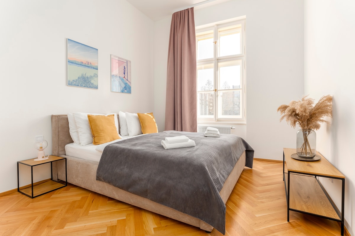 This is your dream apartment in Prague! ✨ Check out our amazing reviews! We offer a beautiful 2-bedroom flat with a spacious living room and kitchen (120 m²) in a historic building with an elevator. Recently renovated, elegantly furnished, fully air-conditioned, and equipped for your perfect stay. Located right in the heart of Prague, just a short walk from Charles Bridge, Dancing House, Petrin Hill, Prague Castle, and the 5-star Novy Smichov shopping center. You’ll fall in love with this place!