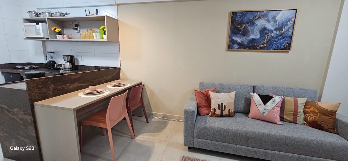 The Flat is perfect for relaxing! It has all the comfort and safety your family needs. Premium finish that has all the kitchen utensils, ensuring freedom to prepare your own meal. At your disposal we have: cooktop, microwave, refrigerator, blender, sandwich maker, pots, glasses, plates, cutlery, cups, 1 Smart TV with access to YouTube and Netflix, two full beds, a sofa bed, free Wi-Fi, table on the balcony/kitchen, sheets, towels and pillows.