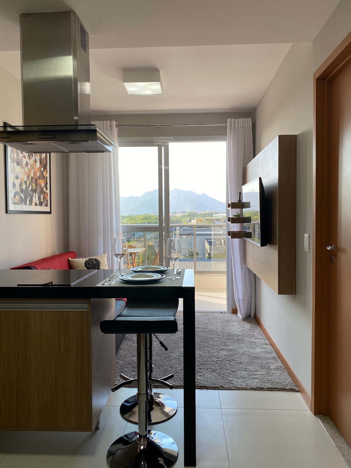 Stay in this beautiful private loft that has all the comforts you need for your leisure or business trip in Vitória Located in front of Camburi Beach, it has easy access to Vitória airport (3 minutes) Offering greater security, you will have 24-hour reception at your disposal and have access to the club with children's and adult pools, a game room, bar and snack bar and several courts. ATTENTION THE LOFT ACCOMMODATES 2 ADULTS IN THE KING-SIZE BED + 2 CHILDREN ON THE SOFA BED. WE HAVE A CRIB AVAILABLE! =)