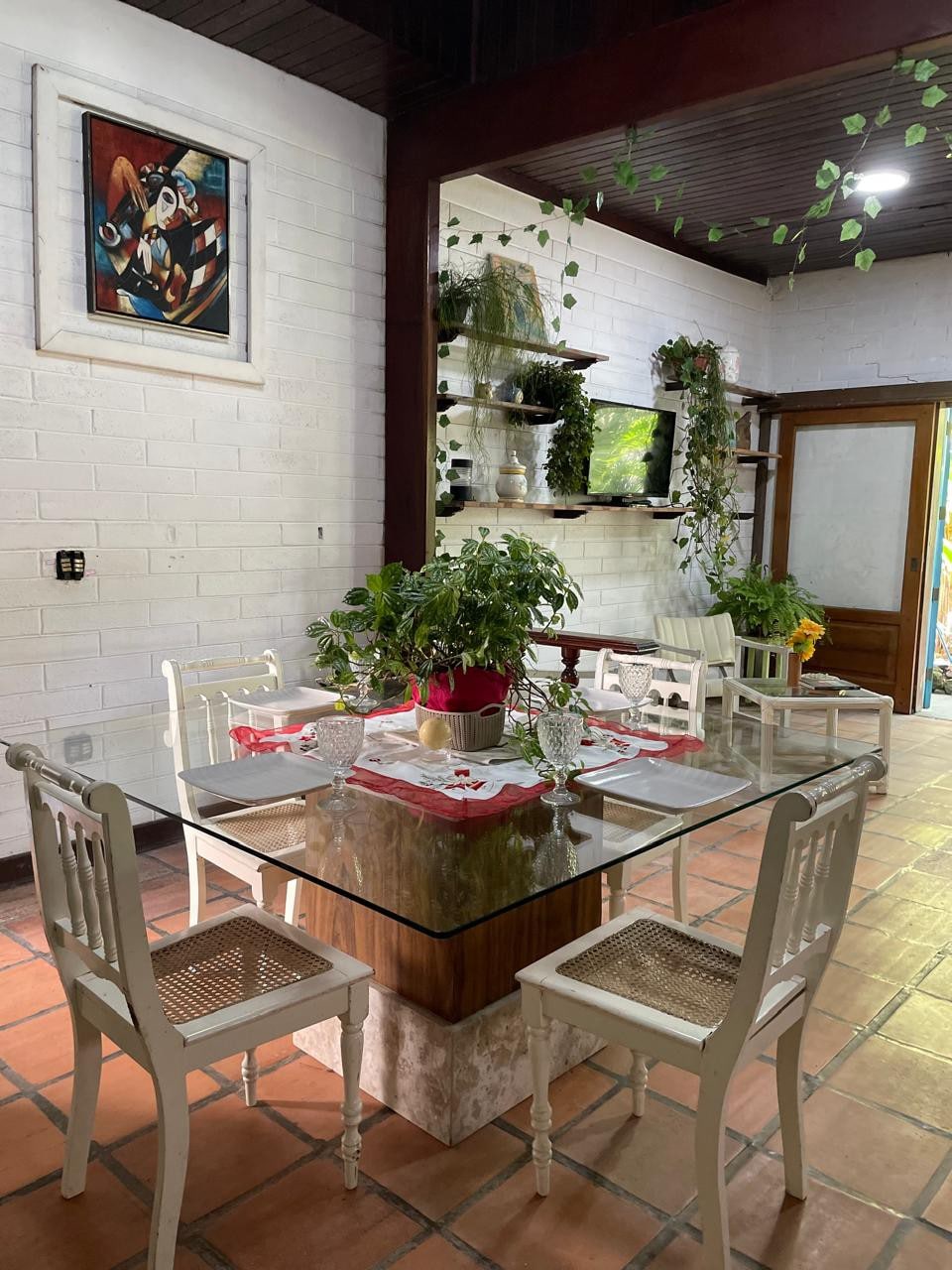 Family atmosphere in a quiet area in Guarujá, accommodation for 6 people, leisure area, snorkeling, foosball, barbecue, a beautiful 6-meter pool, 1 bedroom with a double bed and a bunk bed, hammock, full kitchen, fans in both rooms, air-conditioning, 1 full bathroom inside the house and a toilet in the outside area of the house.