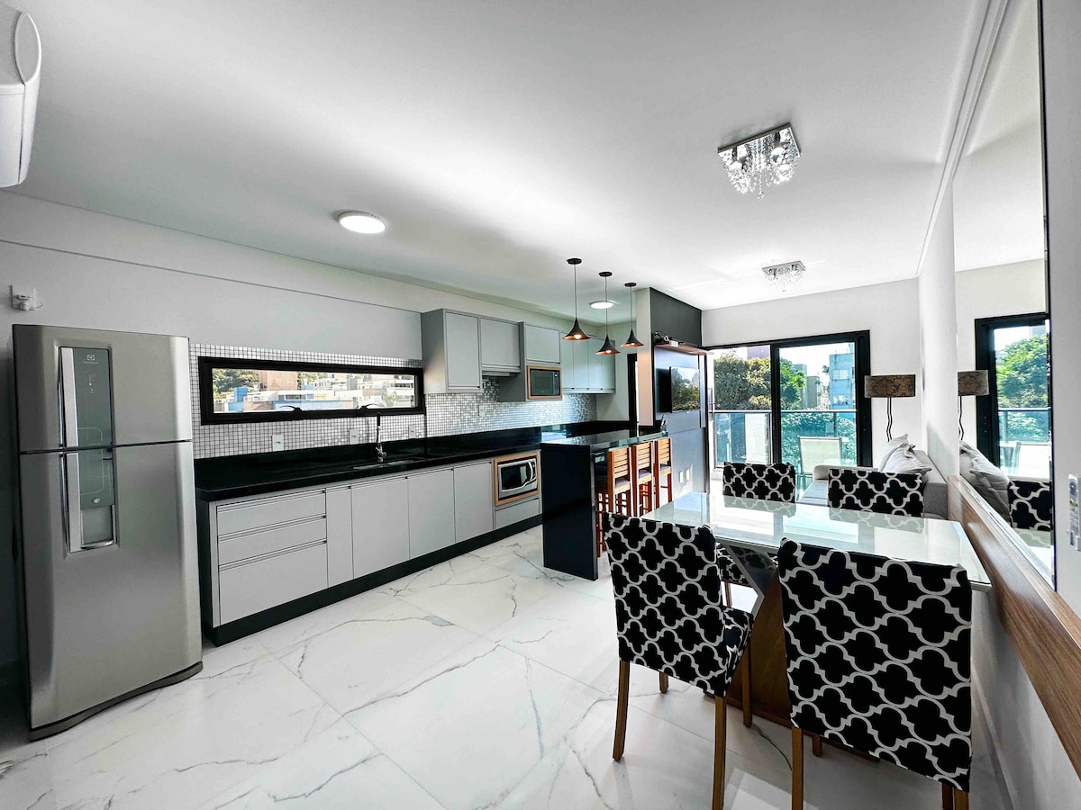 Enjoy an amazing stay in this gorgeous apartment, with great comfort, style and practicality. 2 suites, integrated living room/kitchen, bathroom and balcony with barbecue perfect for relaxing after a day of beach. The atmosphere has been carefully designed to offer wellness, with designed furniture, modern décor and all the necessary items for you to feel at home. Ideal for families, couples or friends who wish to enjoy the best of Bombas Beach with comfort and sophistication.