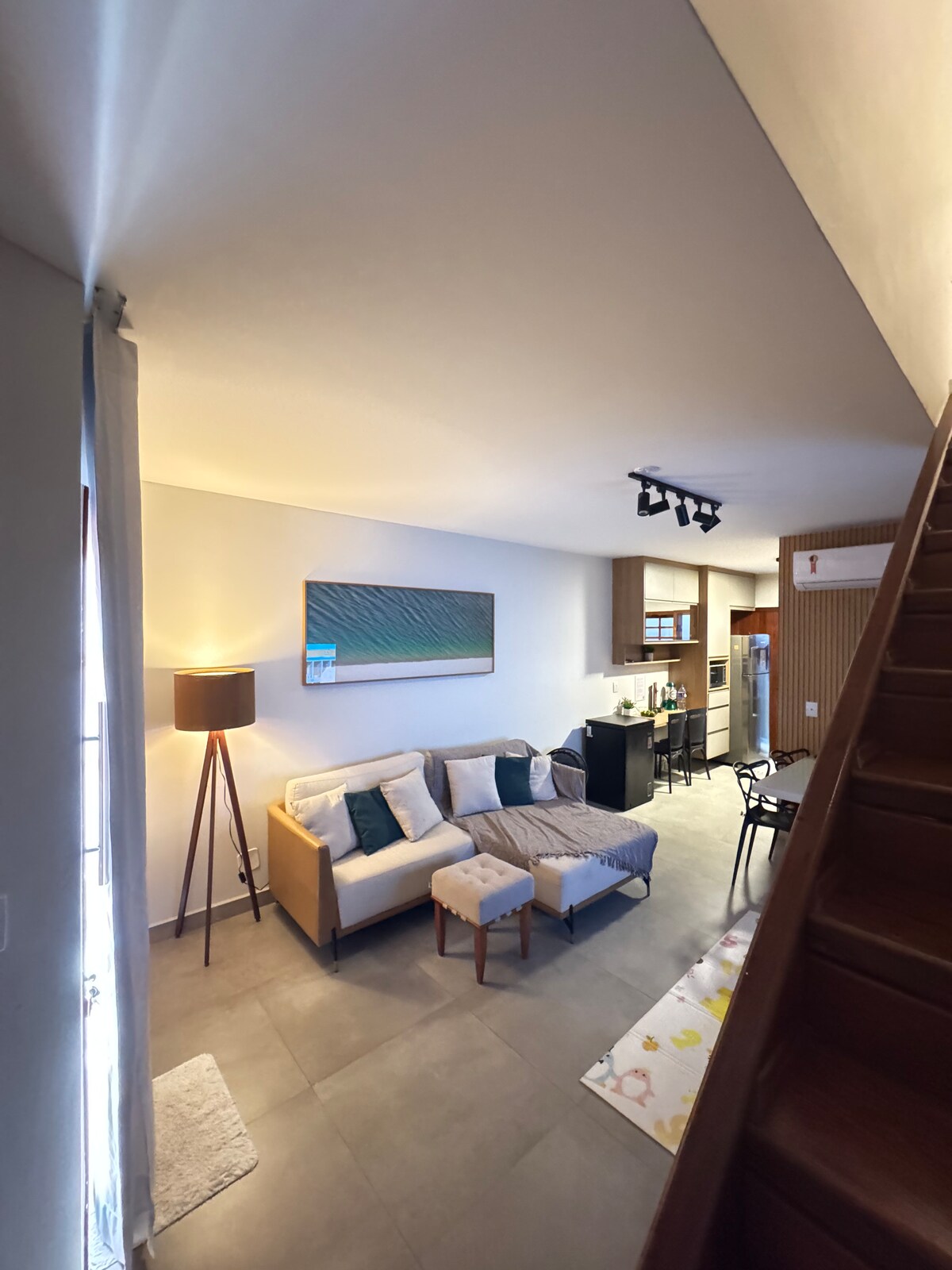 O Loft Mar Mediterrâneo acomoda até 4 pessoas e está a 700m da Praia do Morro. Possui 2 banheiros (1 suíte), sala espaçosa com sofá-cama, cozinha equipada com fogão, AirFryer, geladeira de 375L e todos os itens novos, além de uma área externa com churrasqueira. Conta com garagem privativa (carros compactos de até 4,45mts) e lavanderia, é ideal para quem busca conforto e praticidade. Próximo a restaurantes, farmácias e mercados, sua localização é perfeita para explorar Guarapari.