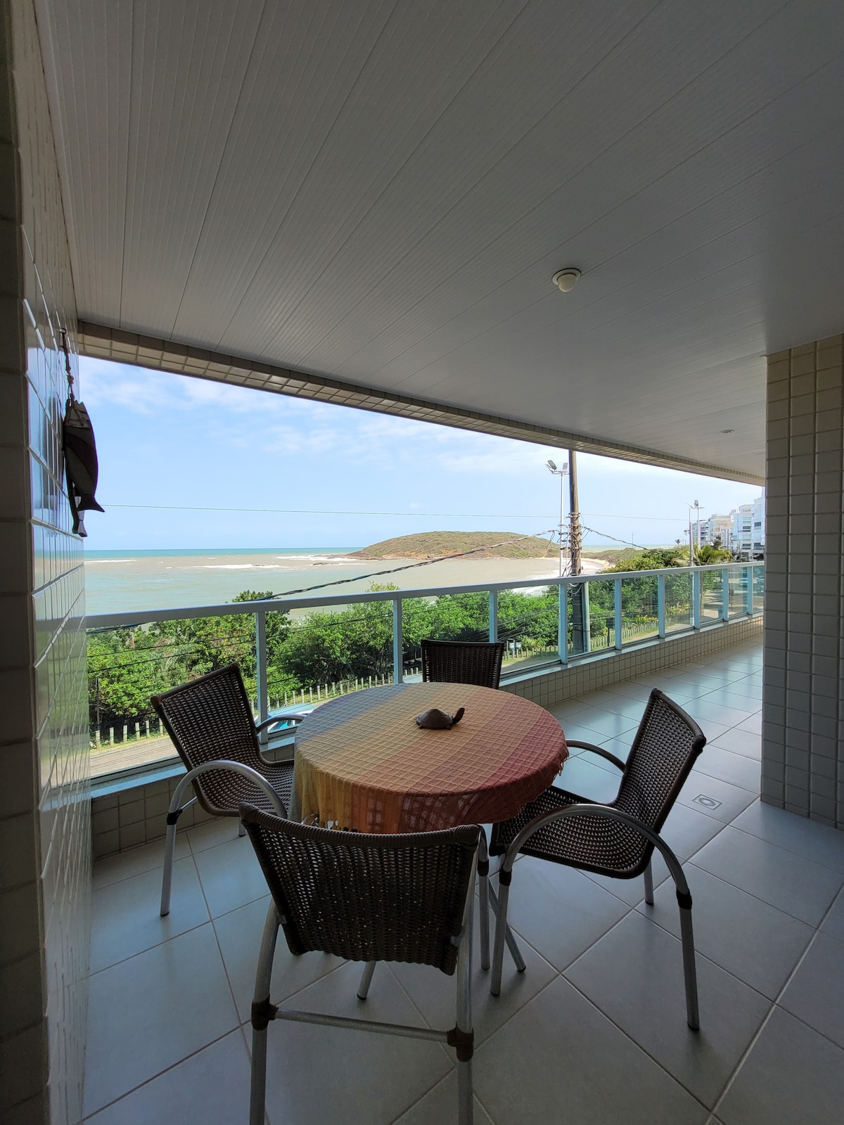 Blue View: Oceanfront Apartment in Enseada Azul! 🏖️ Feet in the sand: Privileged location facing Peracanga beach, just go down and you're already on the beach 🌅 Stunning view: Watch the sunrise directly from your apartment and sleep to the sound of the ocean waves ✔ Air conditioning in all rooms, Wi-Fi, Smart TV and Covered Parking Space. 🏡 Apartment for up to 6 people: 2 bedrooms (1 suite), 2 bathrooms, large living room with panoramic view and full kitchen with utensils.