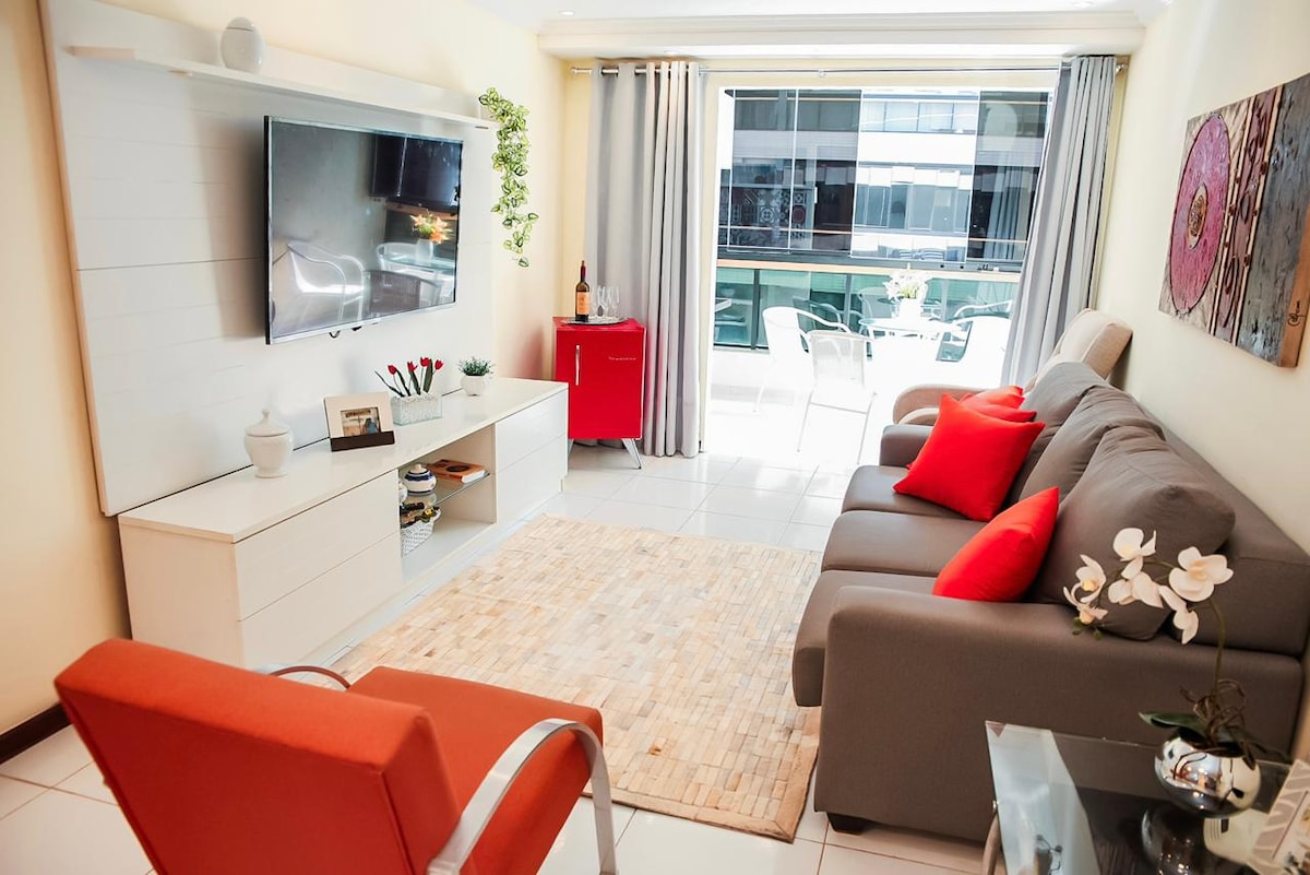 ★ Sea View ★ Stable and Fast Wi-Fi 480 Megabytes! ★Equipped Kitchen ★Refrigerator ★1 Bedroom ★1 Smart TV (living room) ★1 Covered Parking Space ★Morning Sun ★Resting Hammock ★We provide beach items ★Bed and Bath linens for Guest use ★2 Ceiling Fans (living room and bedroom) ♥ A Complete Experience for those Seeking a Place for Family, Leisure or Home-Office ♥ Super Well Located, Just Cross the Street and Set Foot on Peracanga Beach.