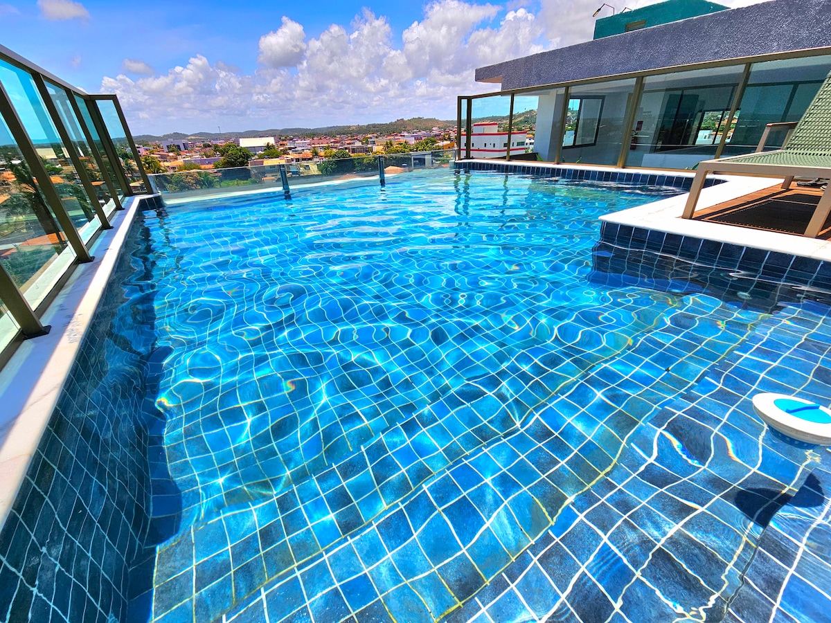 Flat Pé na Areia in Carneiros – Tamandaré Experience unforgettable days in one of Pernambuco's most heavenly destinations! This complete flat offers a bedroom, living room, equipped kitchen, bathroom and an exclusive balcony with a Jacuzzi, perfect for relaxing with a view and sea breeze. The condominium is pure luxury: 🏖 On the sand, direct access to the beach 🏊 2 stunning pools 🌅 Rooftop with panoramic ocean views 🪢 Hammock area for rest 🍴 Restaurant with breakfast and lunch