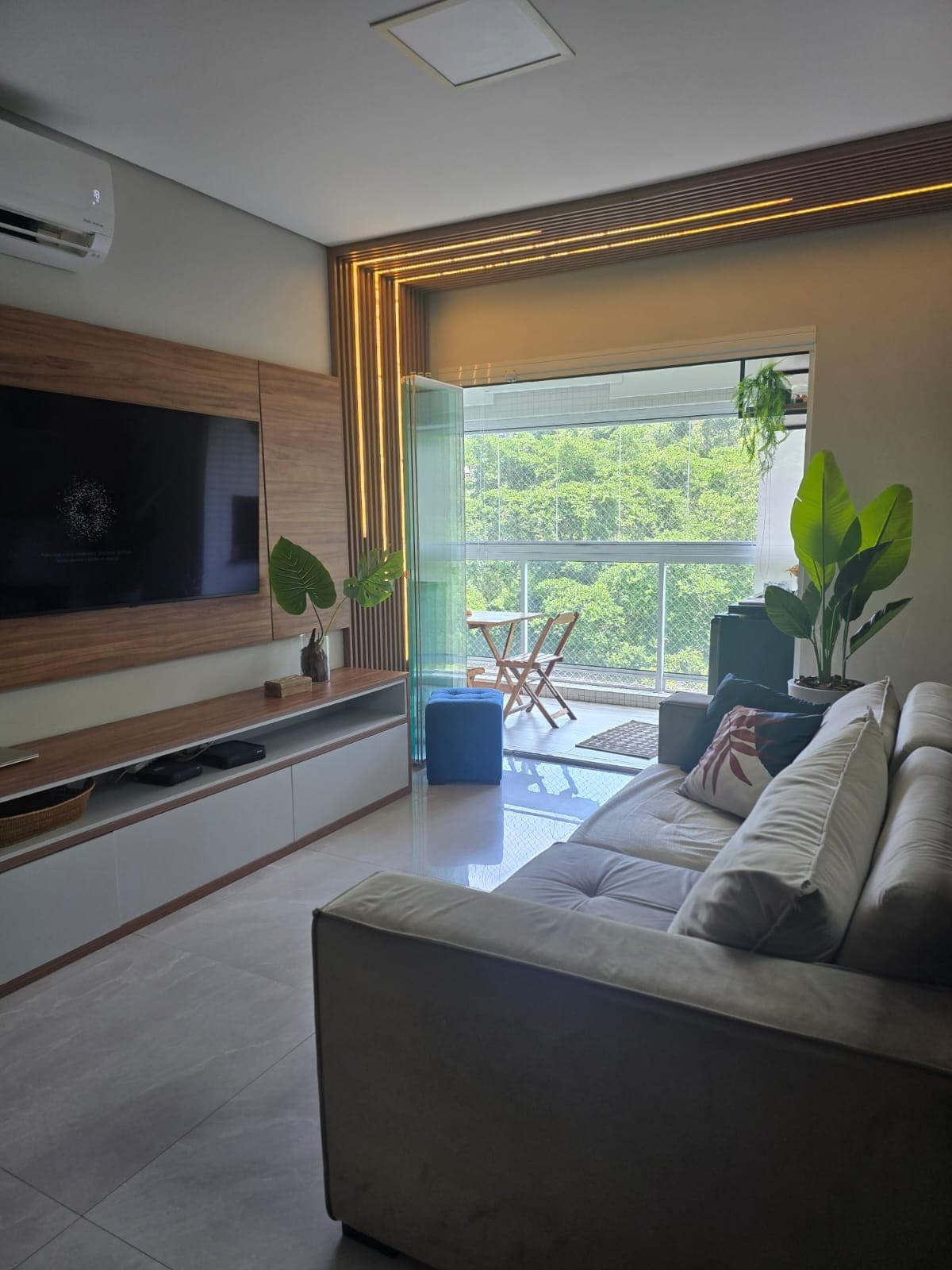 Modern apartment with air-conditioning in the living room and bedroom, equipped kitchen, stove, oven, microwave, Smart TV, Netflix, Wi-Fi, and a large balcony with an exuberant view of Santos Beach. The condominium has a complete leisure area with two incredible swimming pools, one heated and the other with an infinity edge facing the sea.