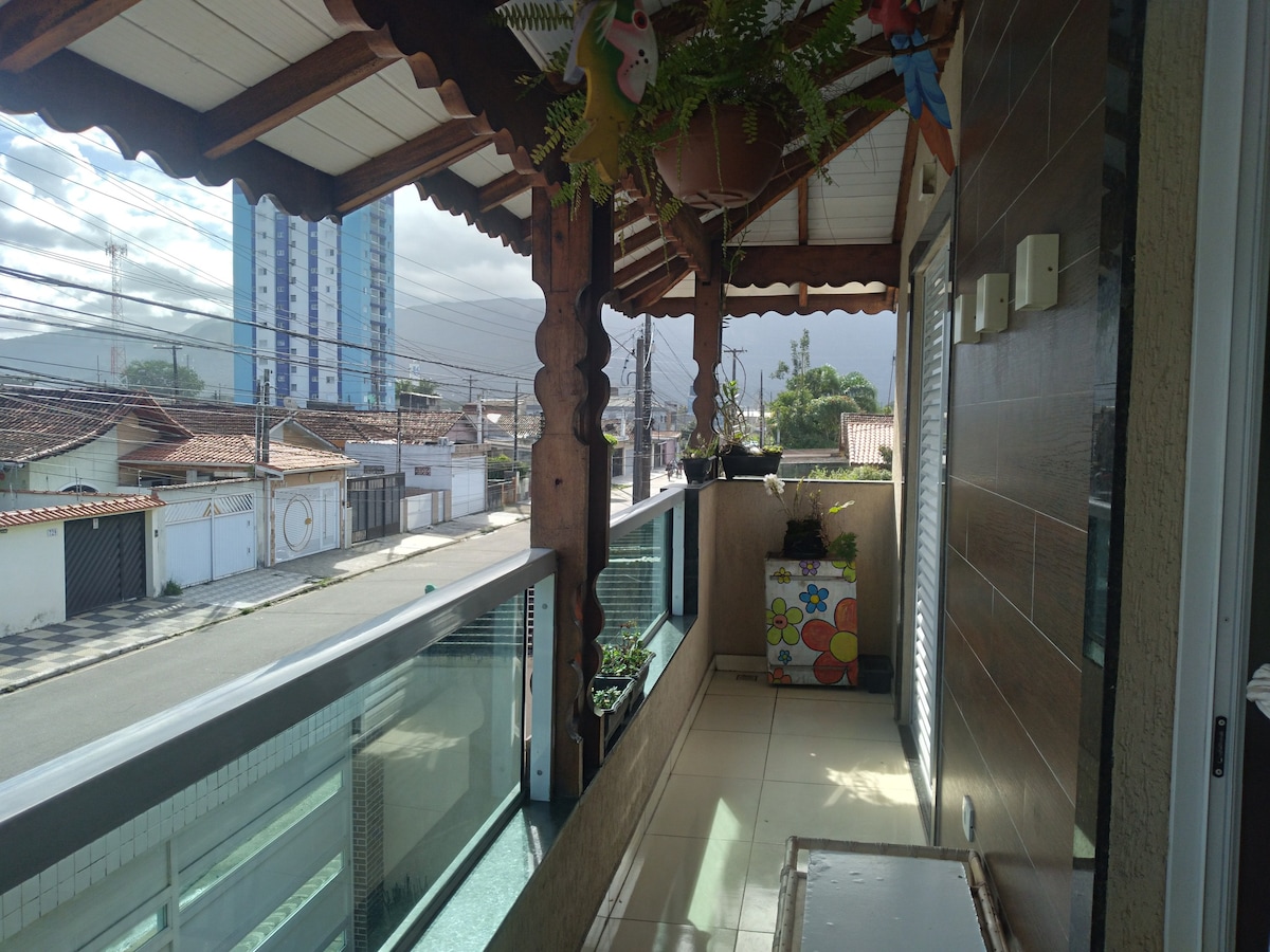 60m² house, overlapping, condominium, front, private, 2 bedrooms, with balcony. Six more houses on the grounds. Accessed via stairway. Garage with 1 random parking space for small and medium-sized cars. Essential shops less than 50 meters away, 500 meters from the sea and 300 meters from Feirinha do Caiçara. REMOTE CHECK-IN. YOU MUST PICK UP THE KEYS AT ANOTHER ADDRESS.