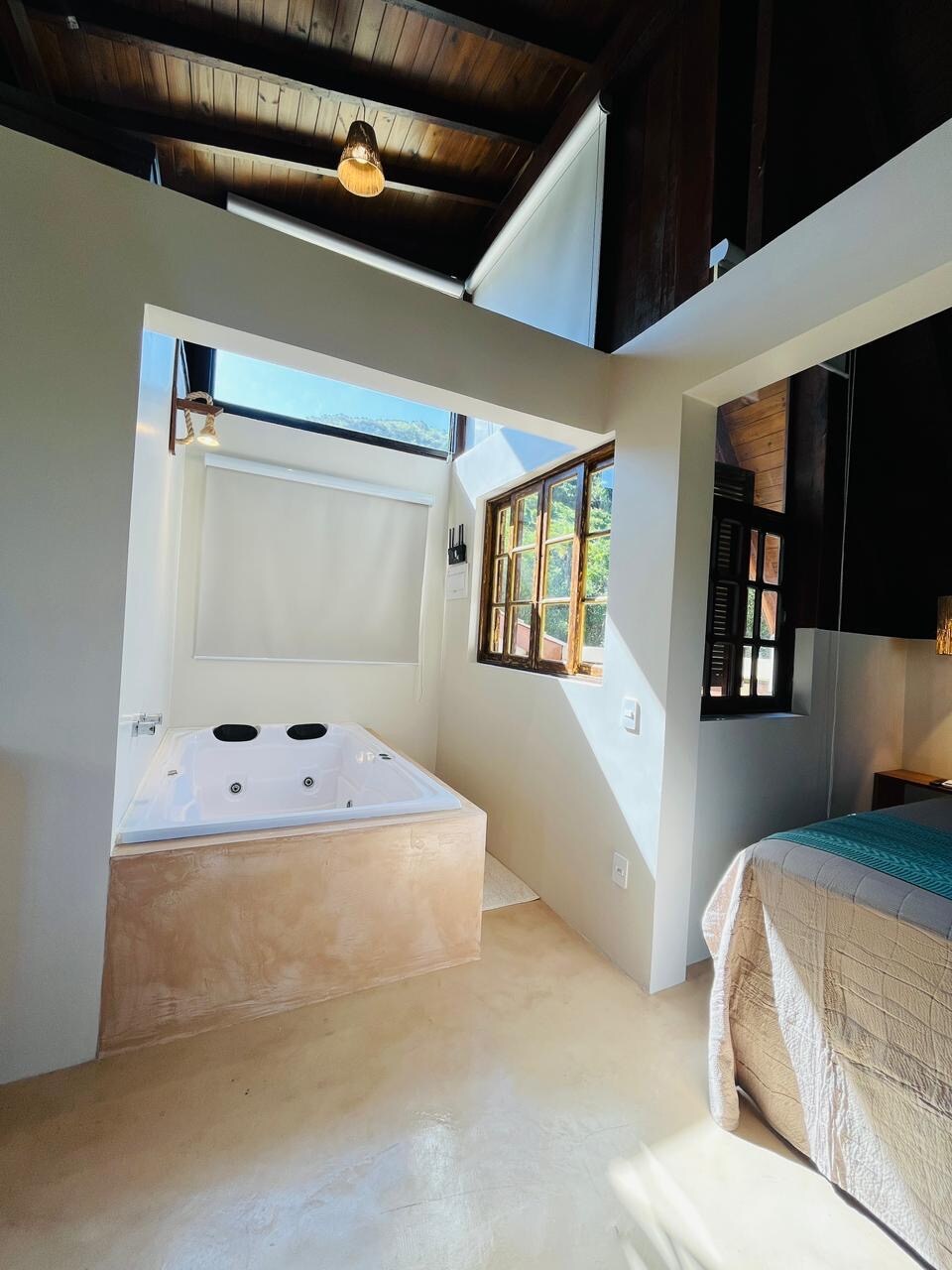 Relaxe neste espaço calmo e cheio de estilo. Experiência única com hidromassagem para casais que buscam um refúgio na natureza e perto do mar em Mariscal. Studio planejado com conceito ecológico sem abrir mão do conforto para descansar e recarregar energias. Aqui você vai estar em frente à mata atlântica, e ao mesmo tempo, apenas 5 minutos a pé da praia.