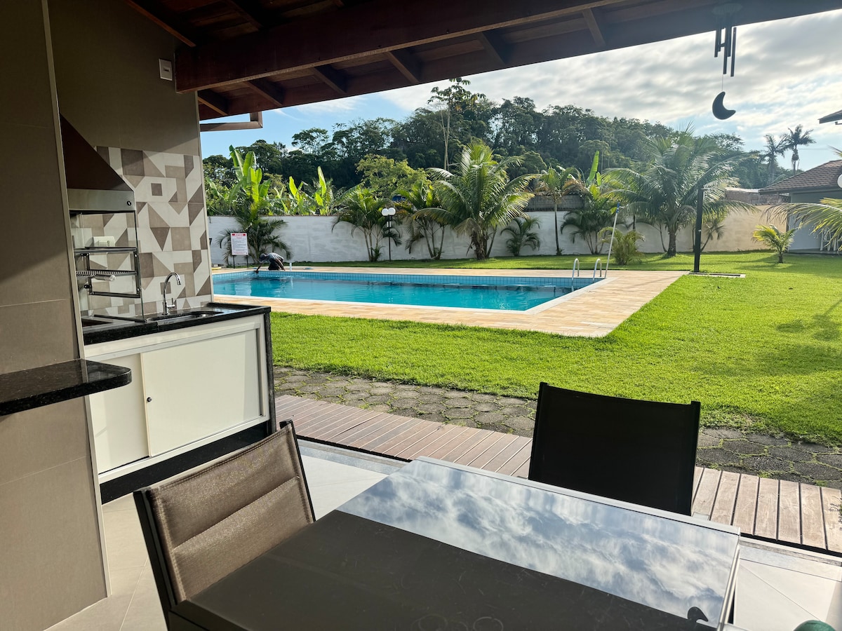 Charming chalet with swimming pool, beautiful garden, parking for 3 cars and barbecue area. Wi-Fi, smart TV with Netflix. Utensils and appliances. It is the ideal place to relax, get in touch with nature and enjoy the beautiful beaches of the north coast. Located 400 meters from Massaguaçu Beach, 3 km from Cocanha Beach and 11 km from Martim de Sá Beach. For the more adventurous, 2.3 km from a pleasant waterfall. We are Pet-friendly! Safe gate and wall for your dog!