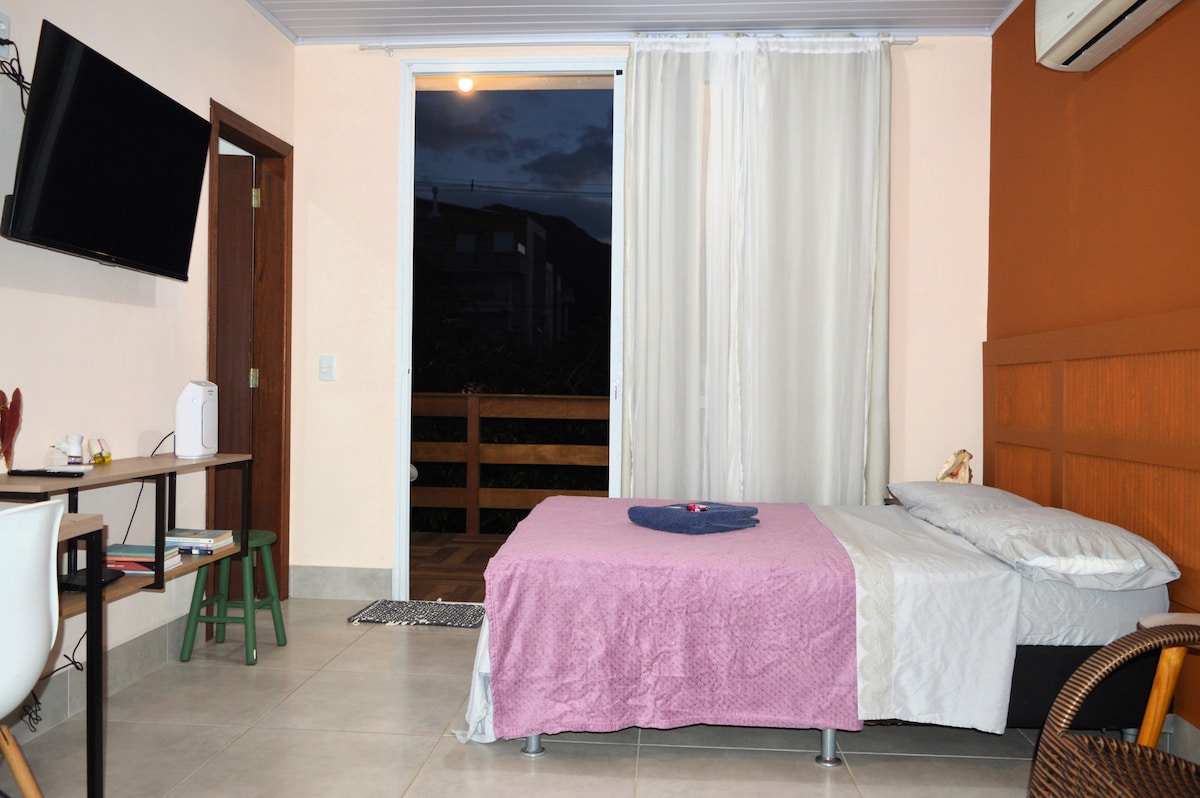 Super charming and romantic, ideal for couples. Located on a hill, with total nature around. Near Joaquina beach 15 minutes on foot, and 10 minutes from the center of Lagoa da Conceição. IDEAL FOR ADVENTURERS. It has fast WI-FI, full kitchen with basic items, bed linen, towels. It has a mini market and restaurants nearby 10, 15 minutes walk. IDEAL FOR ADVENTUREIROS. It has Good Wifi, TV, full kitchen with basic items, linen, towels.
