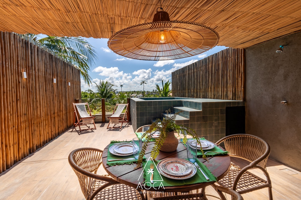Welcome to Casa Guaimbê: a haven that combines the tranquility of the coconut trees and the breeze of the Northeast with the comfort and conveniences of a resort condominium. Located on the charming Toque Beach, one of the most preserved in the region, the highlight is the rooftop with a private pool, panoramic views and a breathtaking sunset. We also offer breakfast and rooftop massage spa experiences as options. (separate cost) Get ready to live unforgettable days!