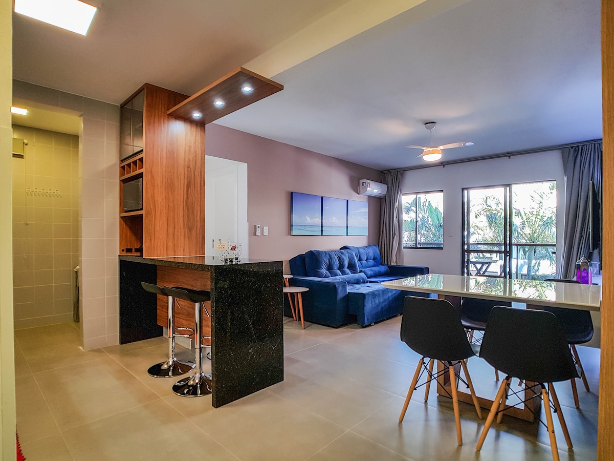 Wonderful apartment between the sea and nature, 2 bedrooms with electric blinds and air-conditioning, 2 bathrooms, 60” 4k TV with Netflix, Hbomax, Xbox One, Wi-Fi, TV in all bedrooms, barbecue on the balcony, custom-made furniture in all rooms, 2 covered parking spaces, beach chairs and umbrella. Adult and children's pool with beach and semi-Olympic lane, multi-sport court, fitness center, game room with pool table and toy library. Apartment to receive your family