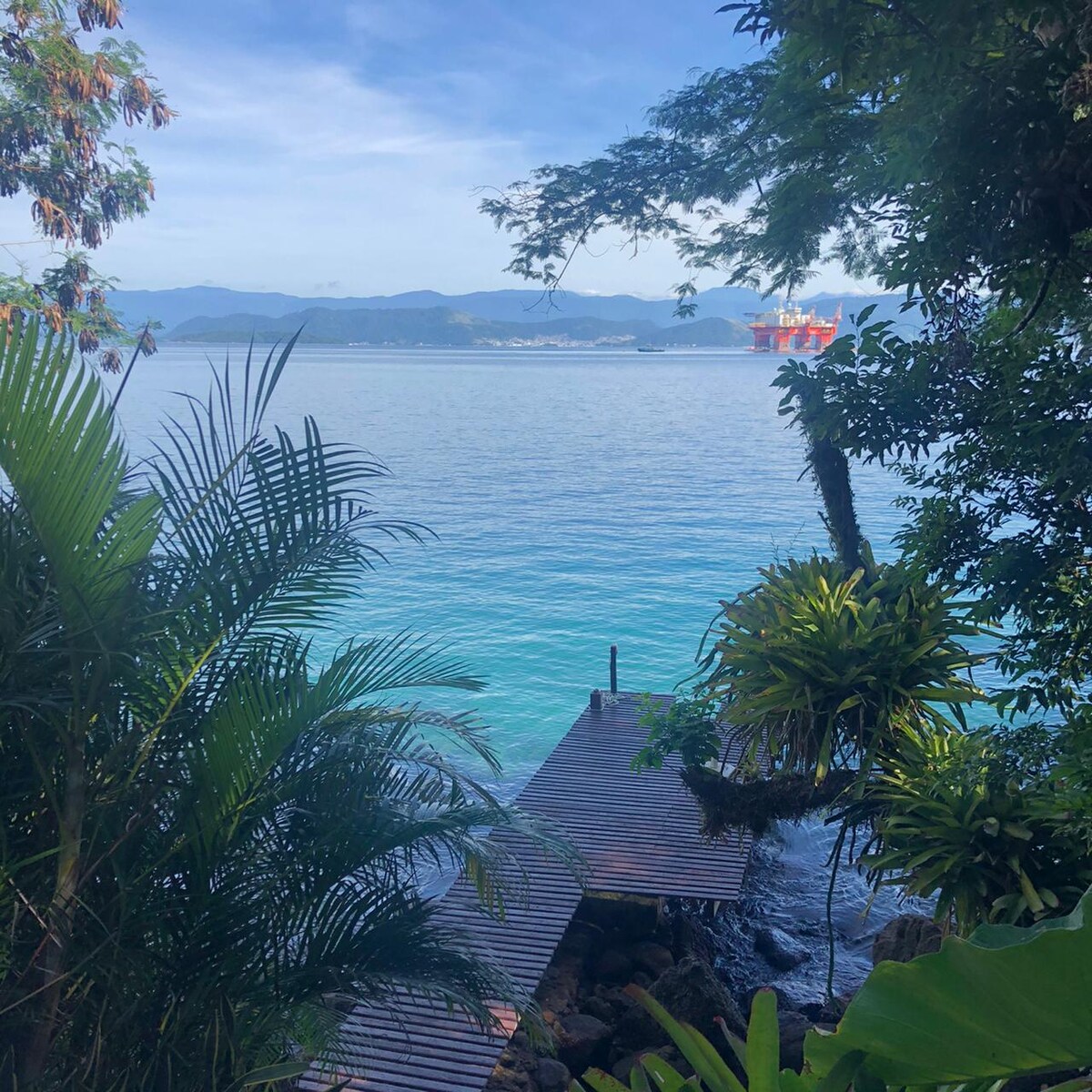 Espaço exclusivo com uma vista deslumbrante para o mar. Refúgio privado e acolhedor, integrado à Mata Atlântica, com pôr do sol inesquecível e águas cristalinas compondo o cenário. Acesso exclusivo ao mar, vista panorâmica única e perfeita para relaxar. Para chegar, necessário vir até Angra dos Reis, onde embarcam numa lancha FlexBoat com destino à Praia Vermelha e Araçatiba (30 minutos de travessia, R$90 por pessoa). Desembarque no cais He’Nalu, direto na propriedade ao lado da Praia Vermelha.