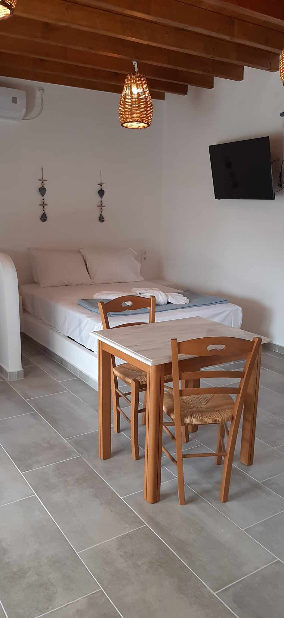 Esperos seaside apartment in Adamas, Milos, is new, beautifully designed and can accomodate 4 persons. Many amenities, aircondition, kitchen, sitting room and balcony to ensure a comfortable vacation by the sea. It is in walking distance from the port, near the restaurants, the shops and all other services. Only a few meters away from the beach, in a quiet neighborhood and offers parking space. Because of its position its can also become your starting point to exlpore the island of Milos.