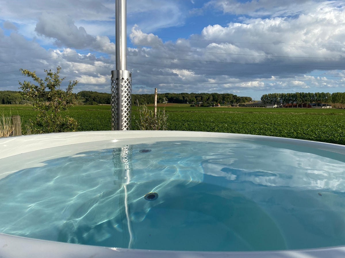 Fully private spa area. Independent day and night access by private entrance and private parking. Premium Jacuzzi with massage jets. Hot stone sauna. Kitchenette with fridge, microwave, coffee maker... Sitting area with sofa and coffee table. Mezzanine bedroom with magnificent views of the fields. Total privacy. 8 m2 suspended terrace with deckchairs. Private 50 m2 garden. Reservations on Sunday evenings are only possible for a minimum of 2 nights.