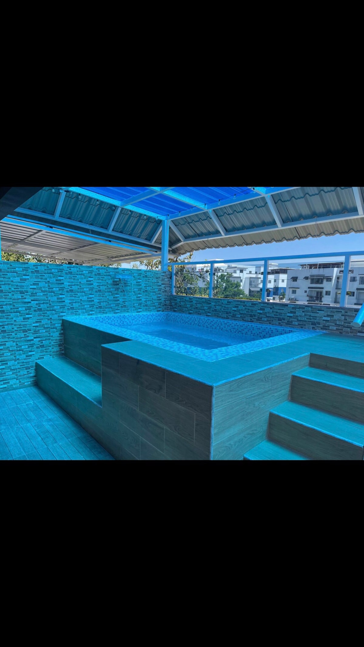 Experience the ultimate blend of style and privacy. What you’ll love: • Private Jacuzzi: Large, modern, and just for you. • Outdoor Living: Terrace with rattan furniture, BBQ, and lush decor. • Luxury Interior: 75" Smart TV, AC, and designer finishes. • Kitchen & Bar: Sleek space with a full cocktail bar setup. • Premium Bath: Ultra-modern dark textures and rainfall shower. Perfect for romantic getaways or elite travelers. Book now!