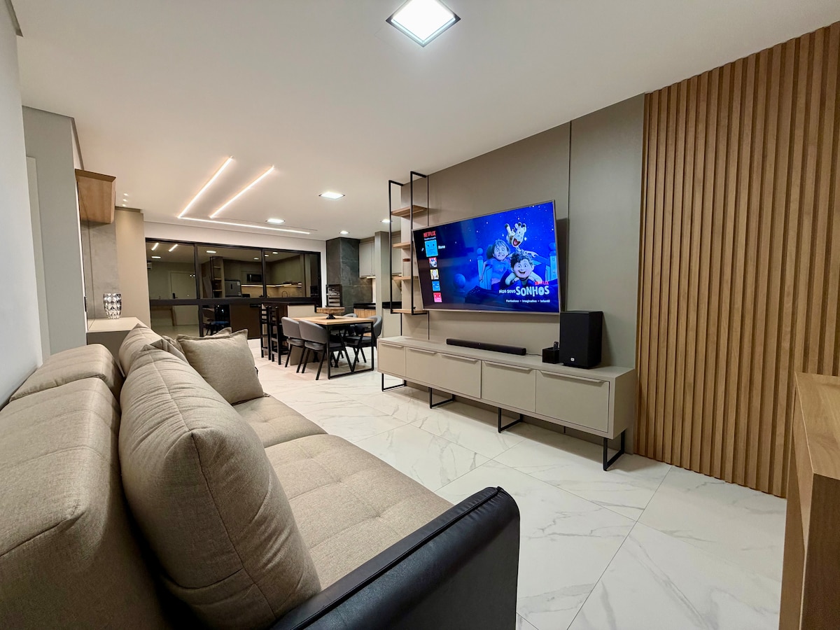 "High-end building, with fitness center, swimming pool, garage, coworking and game room. In the center, close to the best bars and restaurants in Foz do Iguaçu. Nearby there are bakeries, pharmacies, banks and beauty salons. Apartment with a privileged view of the Paraná River and a fantastic sunset, on the 9th floor, designed for a great stay in the Land of the Falls. Accommodates up to 4 (four) adults (02 couples) or 2 (two) adults and 2 (two) children"