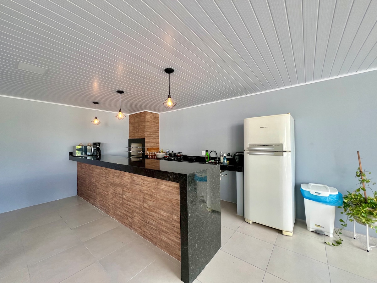 Comfortable and reserved Kitnet. It is separate from the main house, allowing you to come and go as you please. It has a bedroom with a double bed, a bathroom and a kitchen/living room. Microwave, stove without oven, minibar and coffee maker. We provide sheets, pillows, towels and toilet paper. No electric shower at the moment and dogs or cats are not allowed