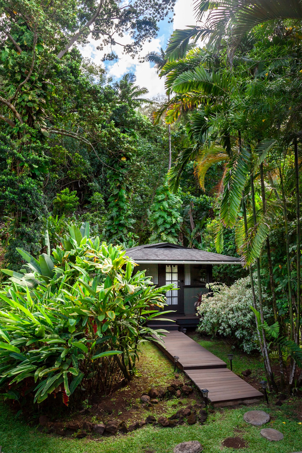 Perfectly Situated on The North Shore of Kaua'i, you are within walking distance of Hideaways Beach and Pu'u Poa Beach. The lanai views are ALL natural: trees, birds, and mountain tops; no buildings! Walk out the front door and you are steps away from Kenomene Park where you can see the stunning views of the Pacific Ocean as well as the surrounding mountains and waterfalls. Fast 400 Mbps WiFi, On-Site Parking, A/C, Full Private Bathroom, Fully Stocked Kitchenette, Linens, Roku Smart TV