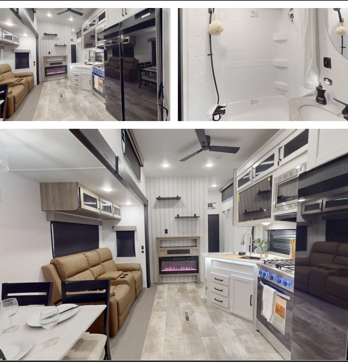 2 bedrooms 2 baths and a loft that sleeps 2. King bed and pullout couch that converts into a queen bed. Spacious trailer immaculately cleaned and disinfectant after every guests. 1 Min off the Highway. Nearby dining options. The Kitchen is equipped with cookware dishware and other kitchen favorites! We also provide cleaning on demand Large parking area that can be used to play a game of basketball or your favorite sport. A patio with a pellet grill table and chairs to enjoy outdoor dining.