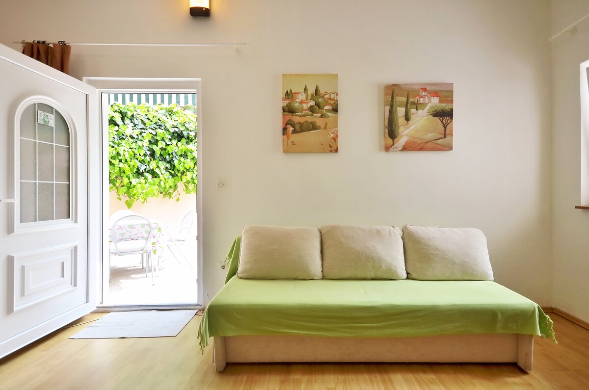 Apartment is for 4 people (2+2) Apartment have Wi-Fi, parking with video surveillance, barbecue, big balcony with see view, TV.. etc.. It is a 2-3 minutes walk from the sea, right next to the apartment are big super markets, in apartment is everything new! (furniture, mattresses)...