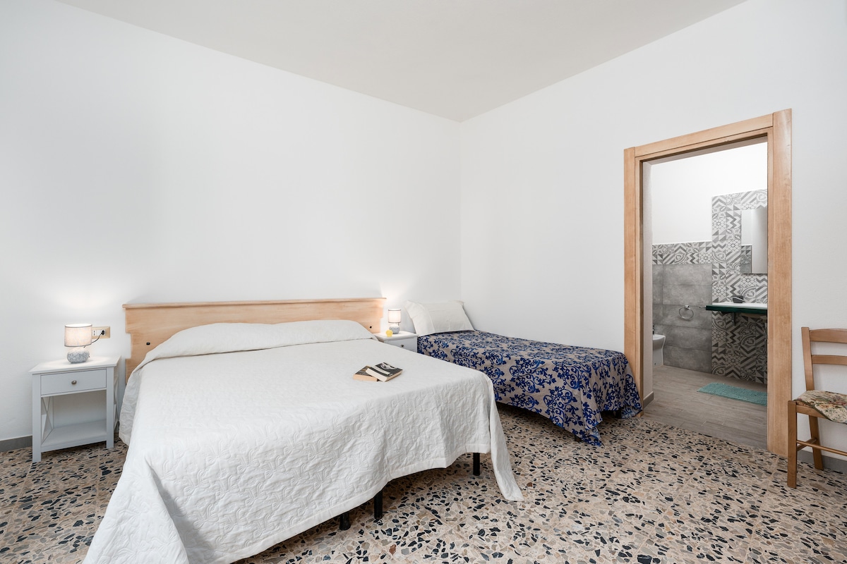 The T-S room in Loculi offers 25 sqm of space and can accommodate up to 3 people, with an extra charge for the third person. During your stay, you will have a bedroom and a private bathroom at your disposal. Amenities include Wi-Fi, a small inner courtyard, and air conditioning. Please respect the common areas, which are under restoration and of historical value.