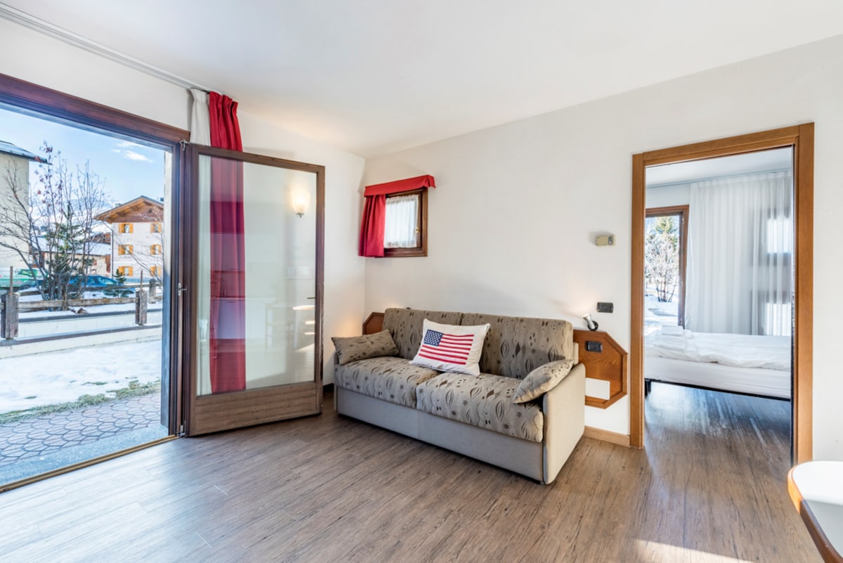 Completely renovated, all apartments feature a bedroom, kitchenette, living room with a double sofa bed in memory foam, bathroom and balcony. Located on the upper floors, they overlook the mountains and surrounding landscape. Beds: 2 single beds and 1 double sofa bed (one of the two apartments has an additional double sofa bed in the bedroom while the other one has two separate single foam chair bed - assignment subject to availability)