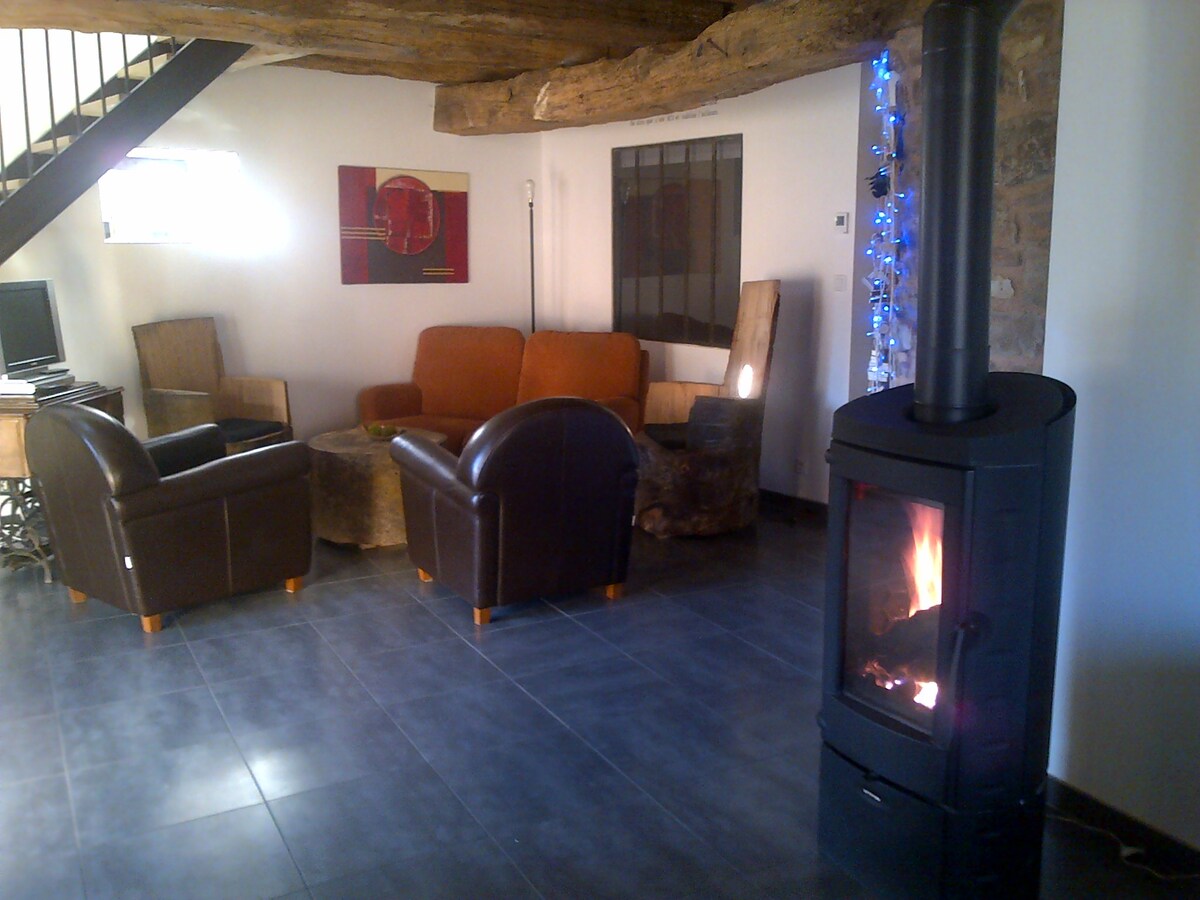 This spacious barn, tastefully renovated, will enchant you with its location in the heart of nature, in a preserved setting. The 28 m² terrace offers a unique panorama of the forest, you are lulled by the sound of the stream below. No TV here, but books. Every detail has been carefully thought out, everything has been carefully selected. This 112 m² accommodation, fully equipped, with 2 double bedrooms, a large living room with insert, a beautiful garden, is a place where time is suspended. Not overlooked.