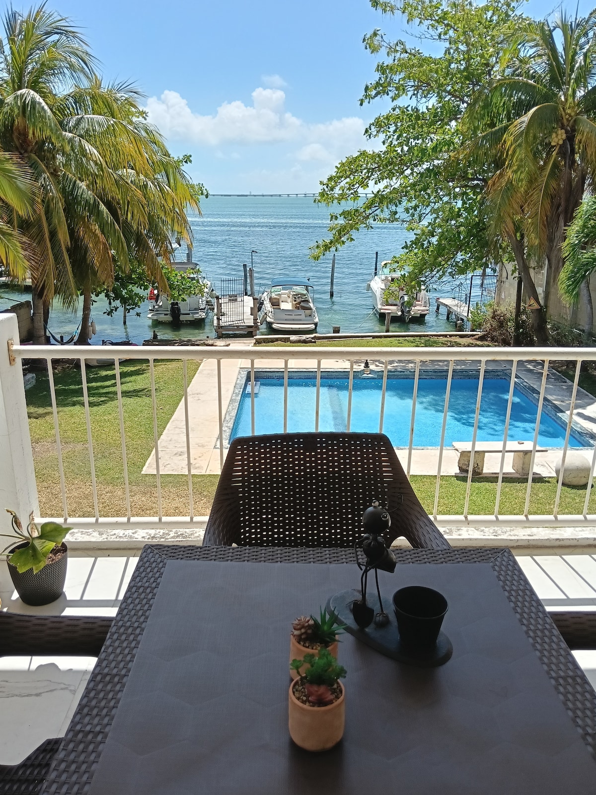 Beautiful apartment with amazing views of the Nichupte Lagoon. It's located in a gated complex with security 24 hours. Amenities are excellent, you can relax and completely enjoy your stay here. Nightclubs and bars are close enough for a short cab ride and far enough to relax away from noise and hustle of busy areas. The Ferry to Isla Mujeres is close by. I highly recommend a day trip to the beautiful Island. On site you will enjoy a large Pool, Restaurant, Mini Market and Tours advisor.