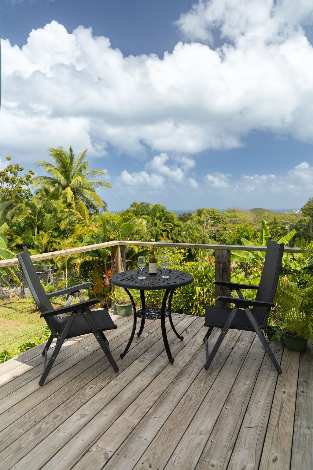 Private nature retreat with spectacular views of the main island of Puerto Rico and the beautiful Caribbean Sea. Private parking, 2 balconies and 3 ways to make coffee. 5 minute drive from ferry, 10 minutes to the beach. Walk 1 minute to authentic Puerto Rican bar and restaurant and 3 minute walk to Mambo's convenient store. No neighbor's on either side. Paraben-free soaps. Sealy Posturepedic bed. Sleep to the orchestra of the forest and watch the sunset from the West facing balcony.