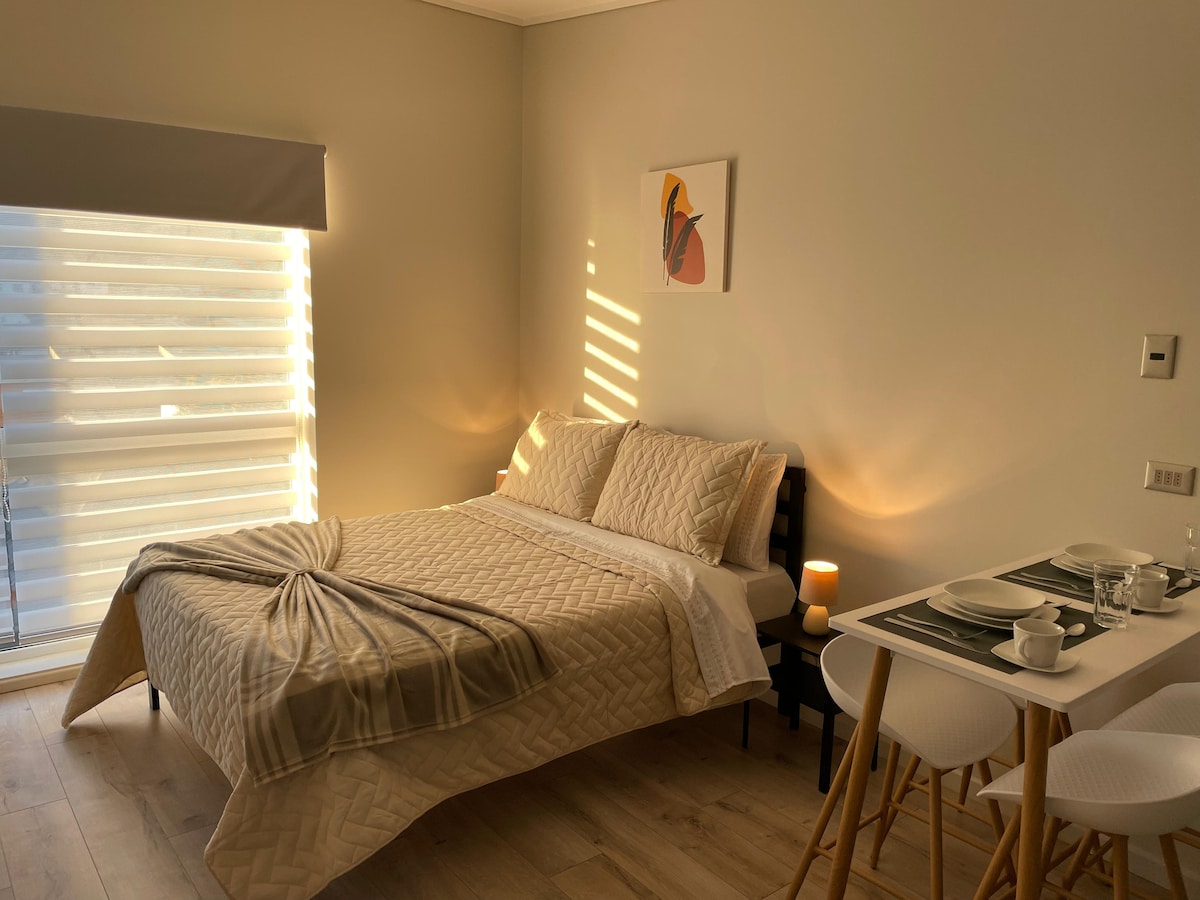 The best location in Puerto Varas city center area in a quiet, quality environment. It's north oriented with sunlight all day. One master bedroom feature private en-suite bathroom and a cozy living with a tv and bed-sofa. 3 min (by walking) to casino, restaurants, public transport, cafes, bars, and handcraft shops. The beach is just 5 min away (waking) My place is good for adventurers, business travelers, and families (with kids).