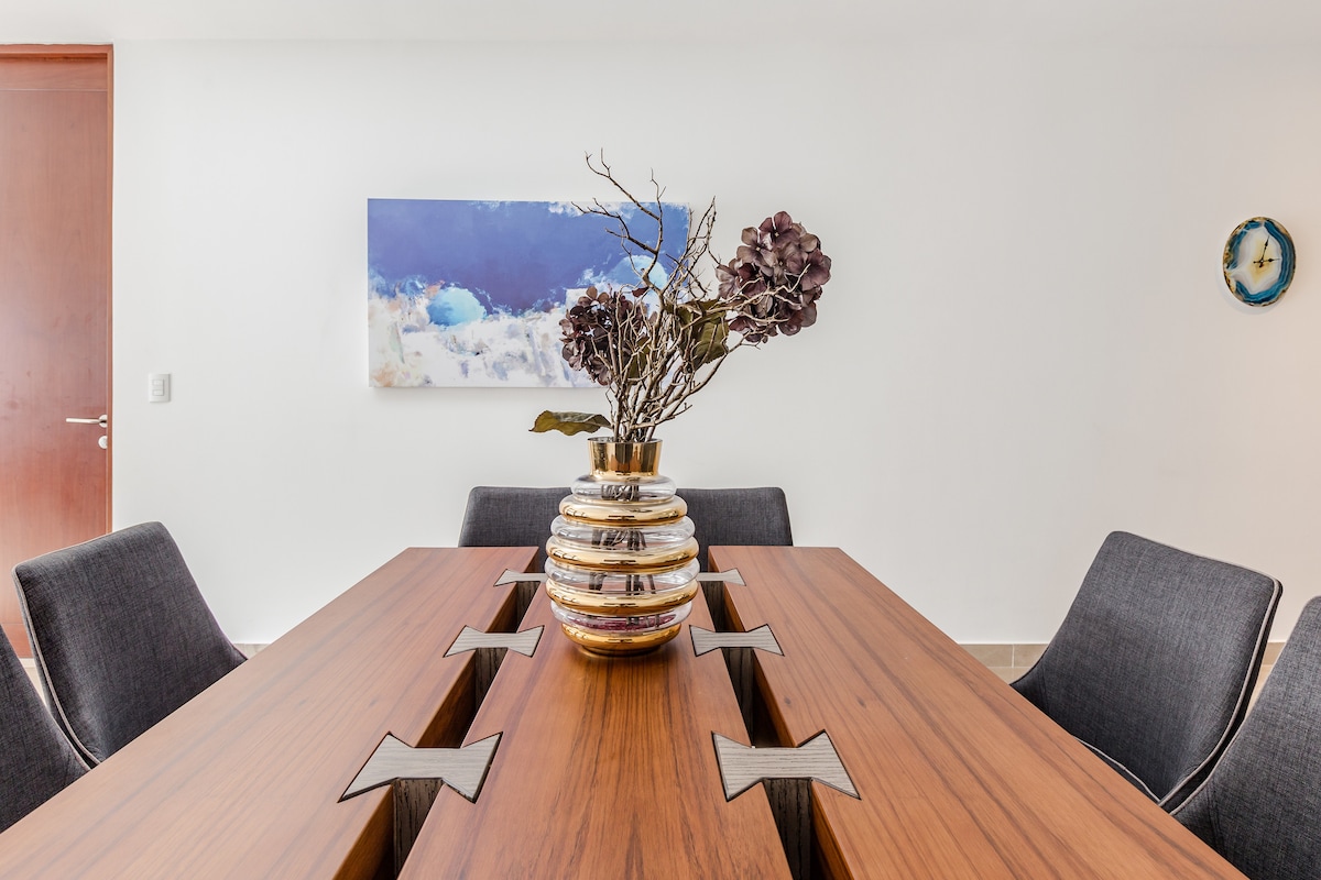 Beautiful and cozy studio, with beautiful Mexican details, fresh marble floors and cozy lighting. It has a king-size bed and a sofa bed, ideal for 2 adults and 1 child, with high-quality sheets for a perfect and restful sleep. Equipped kitchenette, coffee maker, microwave. Balcony area to enjoy unforgettable sunrises and sunsets, enjoy 50" Smart TV, mini split A/C, high-speed WiFi connection, impressive rooftop with pool and hammocks