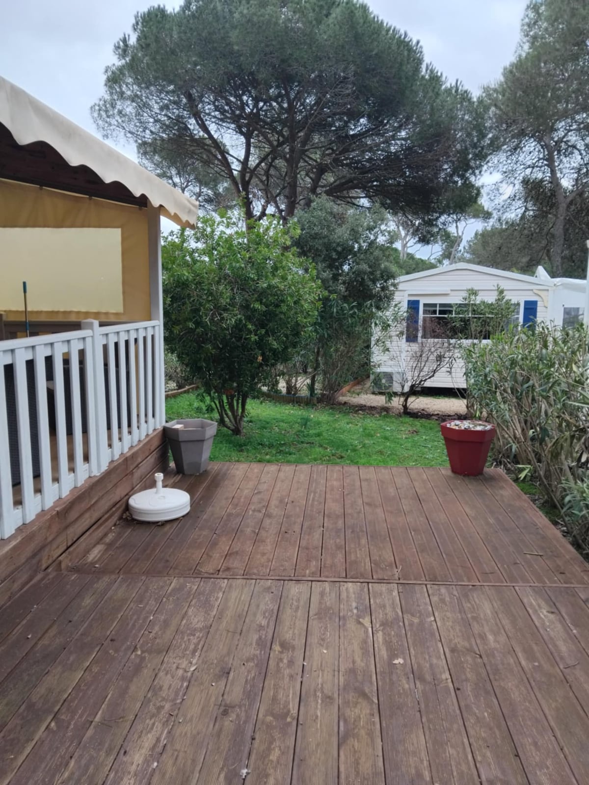Come and stay in a modern 40 m2 Mobile Home from 2021 located in Fréjus on the French Riviera. Ideal for 6/8 people, fully equipped, air-conditioned, USB sockets in each room with a beautiful covered terrace of 20 m2 on a spacious, sunny, wooded, quiet location, and covered with synthetic grass, you can relax in a garden furniture that can accommodate the whole family, friends, and relax on the deckchairs and sunbathing.