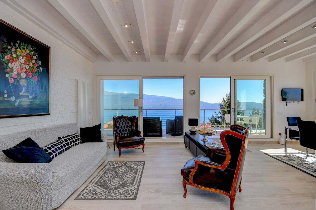 The flat is on the top floor of a XIX century character building. Breathtaking views of the lake from every window and a relaxing atmosphere make it a perfect holiday home. Located in the heart of a small village at half hill named Zuino, surrounded by olive trees, the flat is 25 minutes walk and 8 minutes drive from Gargnano, 5 minutes drive from Bogliaco, one of the main beaches. Private free parking. CIR 017076 CNI 00010