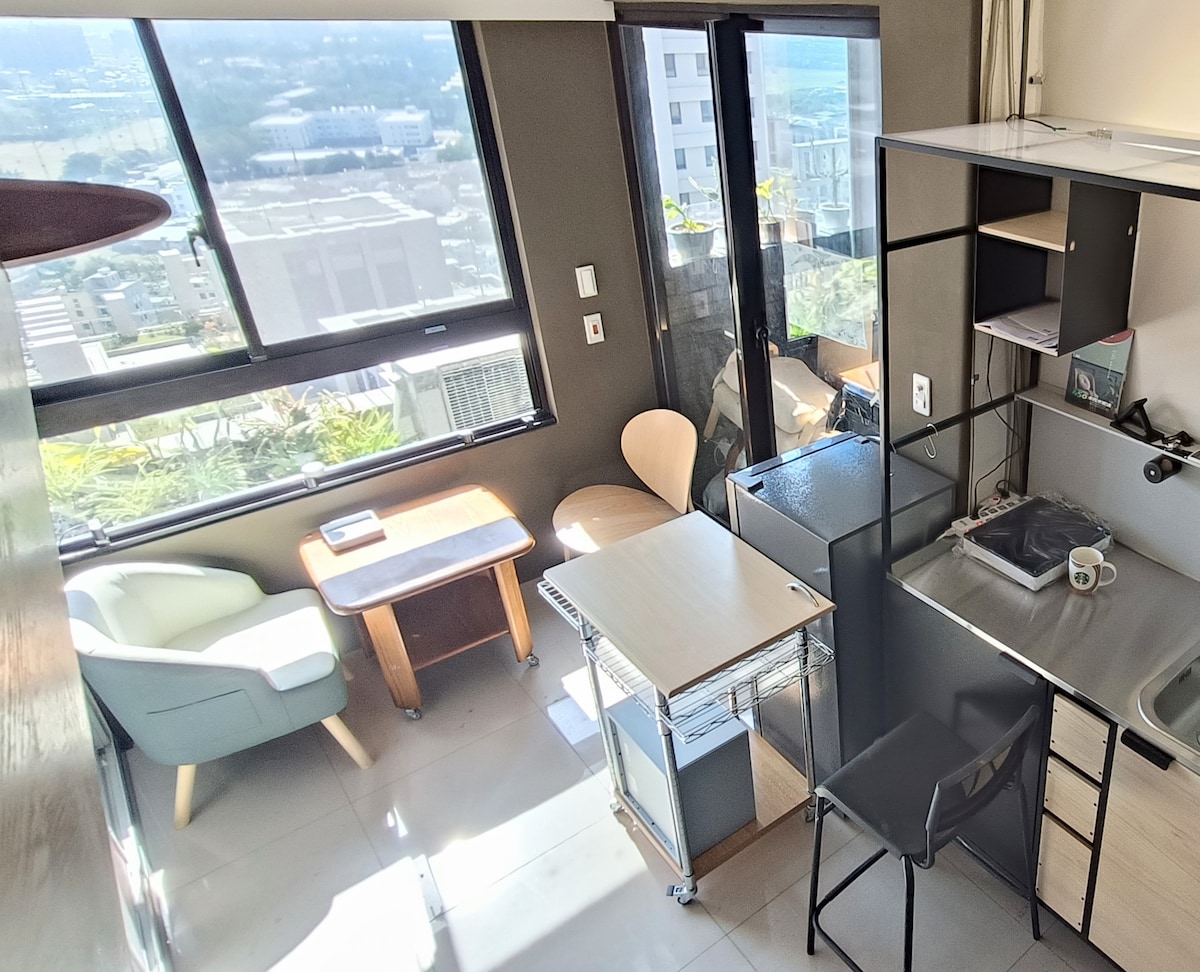 [月季年租]陽光挑高景觀套房。高鐵10分鐘,彩虹藝術村+嶺東科大。小廚房+吧台+閣樓+陽台+四季花台