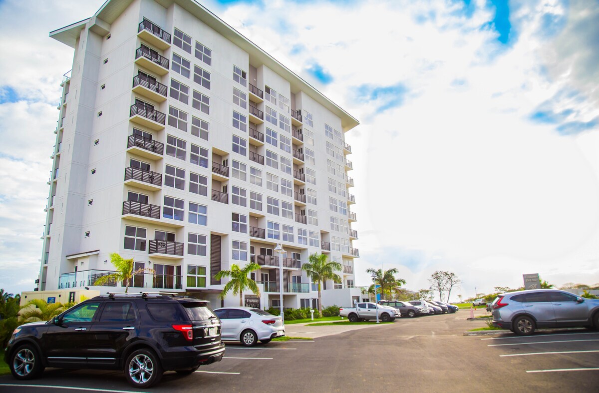 Welcome to Paradise! Our deluxe beach apartment is in the middle of 24 km of white sand beach in the best resort in Panama. Watch the ocean waves crashing on the shore. This is the perfect spot to see the sunrise to the east with your morning coffee or the early morning surfers riding the waves. • 800 sqft. private balcony + free parking • Magnificent view of the pools, beach, and surfers • Secure, safe gated community • Access to social areas, restaurants , kids' areas, sunbeds, and gazebos