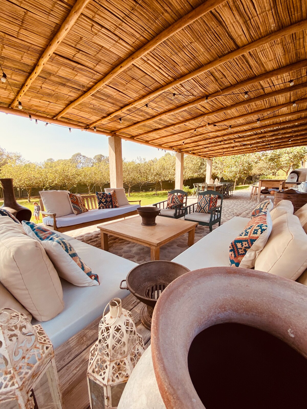Experience Cabaña las Lilas Pachacamac, away from noise, full of peace and surrounded by nature. It has a sunny climate almost all year round. It is a house with a pool ideal for children and adults, it has a grill area, terrace, clay oven, area for making a bonfire and a trampoline. Animals: 2 docile dogs, separated from the house and garden. 24/7 security. The caretaker and his wife live on the property in a small house separate from the main house.