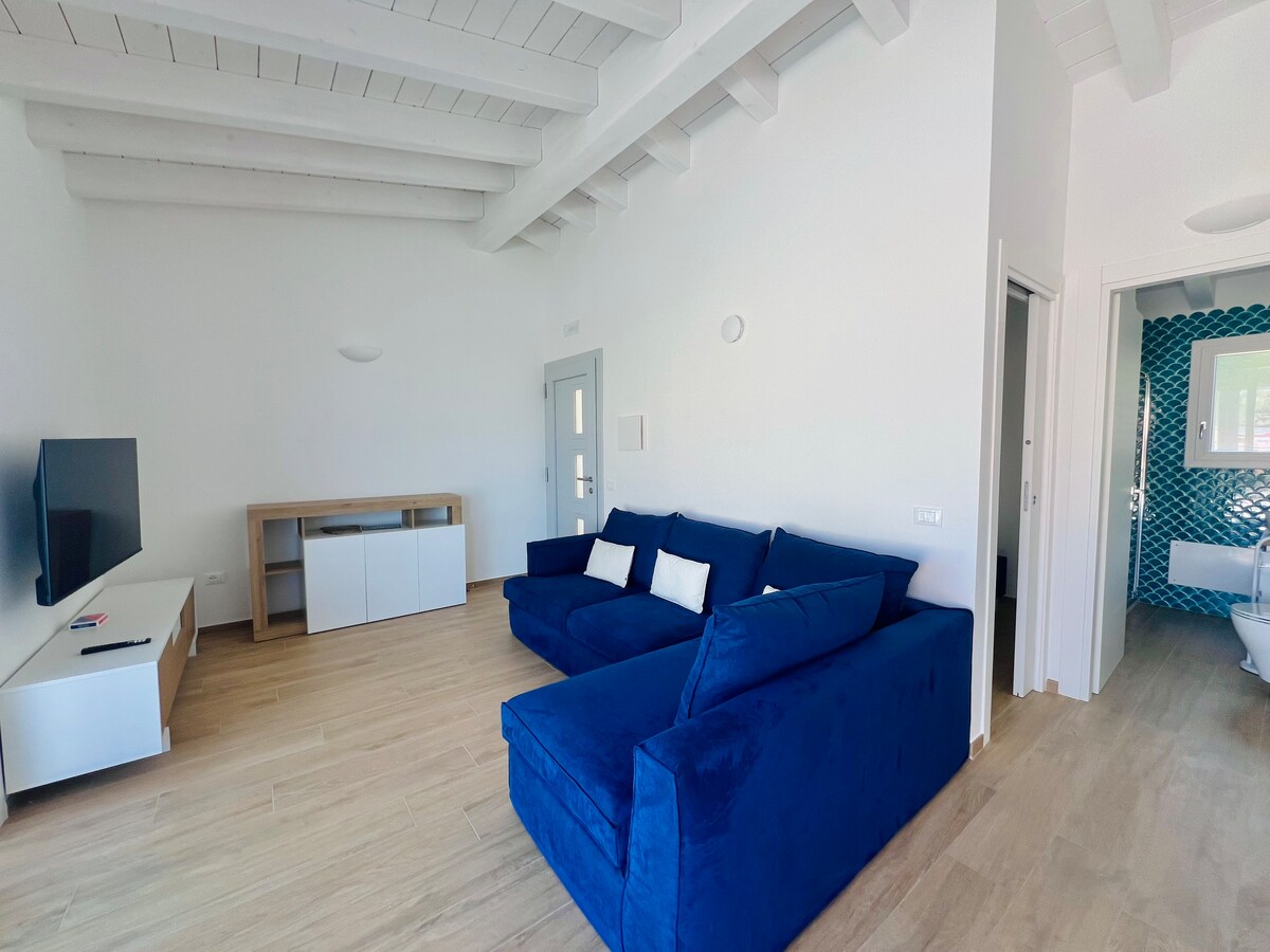 Grazioso Monolacale indipendente, accogliente, con ingresso libero e gratuito alla Piscina(ACQUA SALATA, NON CLORO) praticamente con acqua di Mare!!! Completo di tutto...letto matrimoniale, bagno spazioso, tv led satellitare, aria condizionata, riscaldamento, angolo cucina, forno classico, forno microonde, frigorifero, lavatrice e parcheggio Ideale per un pò di relax, pace e silenzio notturno! Ospita comodamente 2 persone, e una terza se un bambino in BOX CULLA! 30 mq circa più veranda coperta!