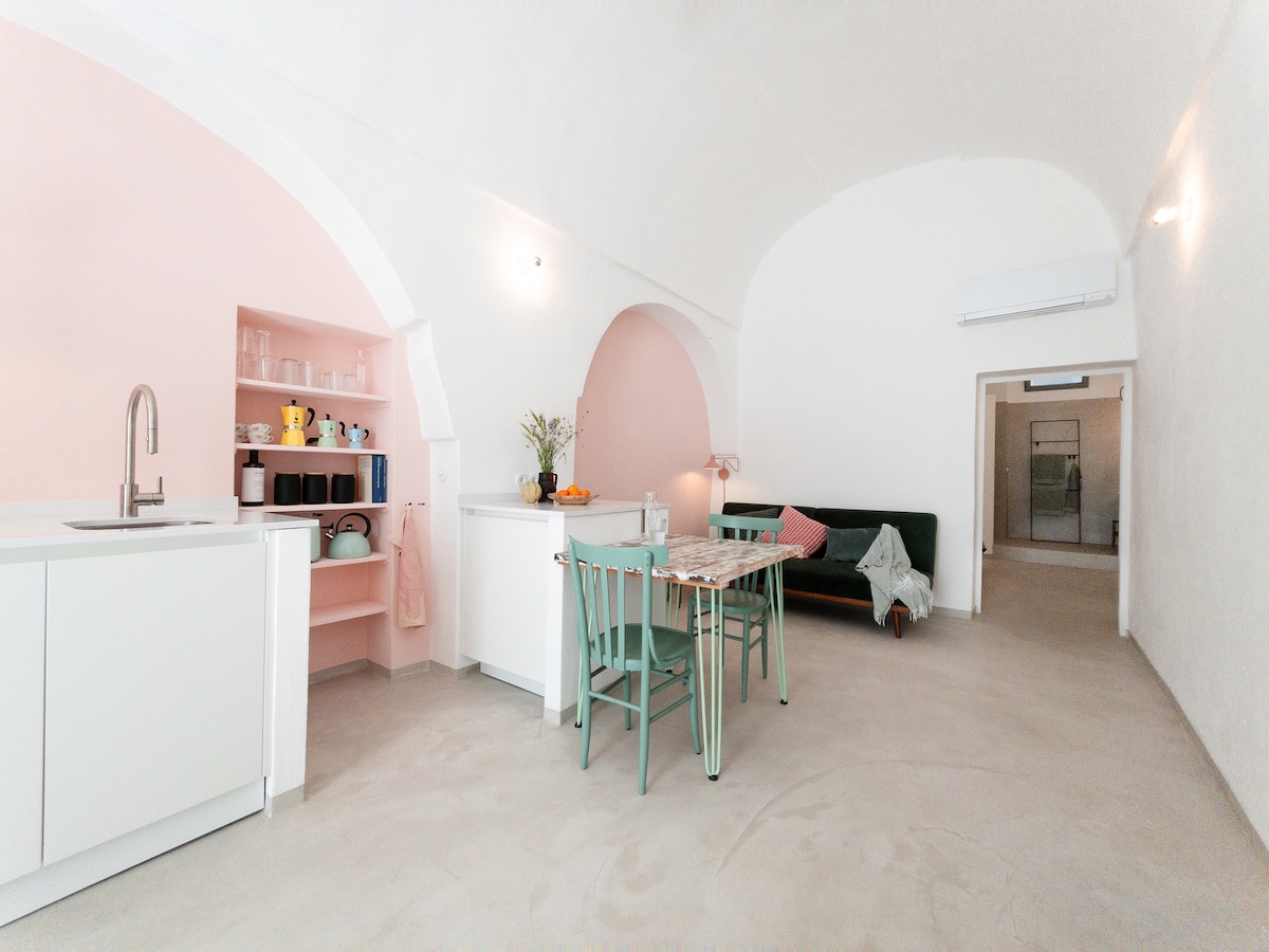 Romantic and typical apartment for three people in the heart of centre of Monopoli, in Apulia. The property has been restored with really high standards and furnished with tailor made details and interiors; the accomodation is located in an area well serviced by public transport and offers the possibility of free car parks in a radius of 100 mt. You can also find numerous prestigious restaurants in the neighbourhood.