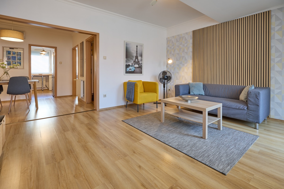 Discover modern urban living in our centrally located Airbnb apartment. This sleek one-bedroom retreat in a contemporary building is an ideal choice for up to four people, thanks to an additional futon. Perfect for solo travelers, couples, or small groups seeking convenience and style. Fedezze fel a modern városi életet központi elhelyezkedésű Airbnb apartmanunkban. Ez a letisztult egy hálószobás menedék a kortárs épületben ideális választás pároknak, barátoknak vagy akár családoknak .