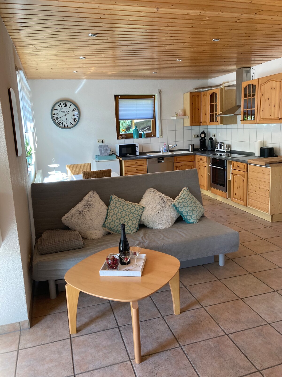 Apartment Rosie – Highlights: ✔ Suitable for up to 6 people – 2 bedrooms with large double beds plus a spacious sofa bed in the living room ✔ Private garden with table and chairs, charcoal grill, and outdoor shower ✔ Exclusive large garage for cars and bicycles ✔ Washing machine, dryer & dishwasher ✔ Pet-friendly – all four-legged friends are welcome ✔ Smart TV with Netflix subscription and high-speed internet ✔ Fully equipped, spacious kitchen ✔ Cozy living area with a classic atmosphere