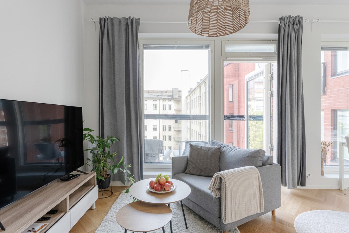 Enjoy stylish accommodation in the heart of Tampere, in an almost 100-year-old building! The completely modern 40m2 apartment breathes history with small details: wide window sills, original doors and thick walls. A stylish glass wall separates the bedroom. The modern kitchen has all the necessary appliances, including an espresso machine. Coffee and tea are complimentary! The apartment is located in the centre, next to Nokia Arena and Ratina shopping center. Welcome!