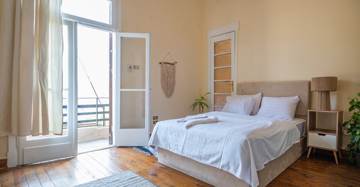 Stay in style in the perhaps most beautiful Airbnb apartment in Cairo, located in an early-20th century building situated in the freshly renovated pedestrian quarter of bustling historic downtown Cairo - the cultural, financial, and startup center of Egypt. With 4 meter high ceilings, reused architectural details, and a skillfully curated mix of antique, vintage, and new furniture, this two-bedroom apartment boasts 3 balconies, a comfortable kitchen, and an additional loft bed area.