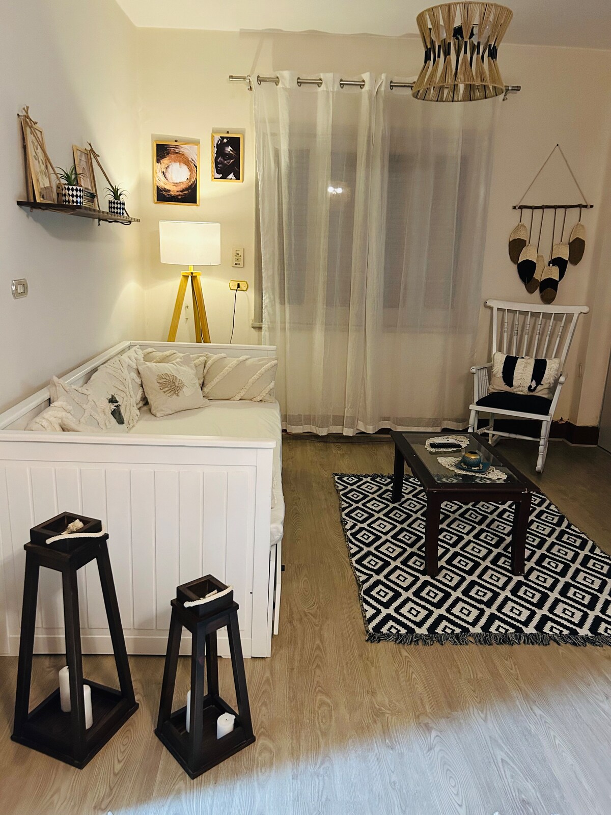 Enjoy a stylish experience at this centrally-located vibrant retreat. Discover urban comfort in our newly refurbished mid-century built 2-bed, 1-bath apartment. Eclectic interiors mixing classic, boho and modern styles make this a unique retreat. Ideal for city exploration, 5 mins to Tahrir Square and 7 mins to the Egyptian museum. the apartment offers a funky kitchen, boho bedrooms, and a sleek bathroom. Immerse yourself in the vibrant city downtown life, with vintage bars and restaurants.