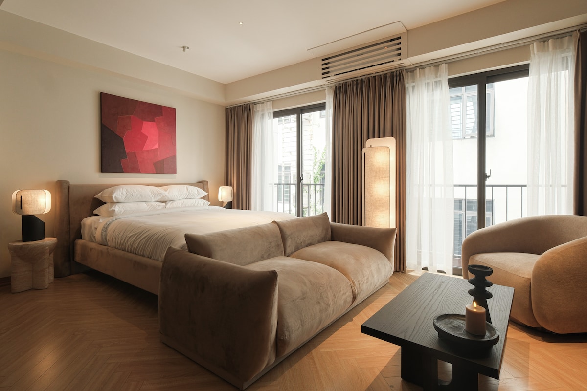 Enjoy Hanoi’s Old Quarter from a modern retreat just steps from the iconic TRAIN STREET. This apartment features a SUPER KING SIZE BED, A COMFORT SOFA, and luxury bathroom with shower and WOODEN BATH TUB. Cook in your PRIVATE KITCHEN and unwind with the 100-INCHES PROJECTOR and Wi-Fi. A LARGE SOUNDPROOF WINDOW offers lively street views, blending Hanoi’s charm with home comforts. Ideal for travelers seeking a unique and tranquility stay in the heart of the city.