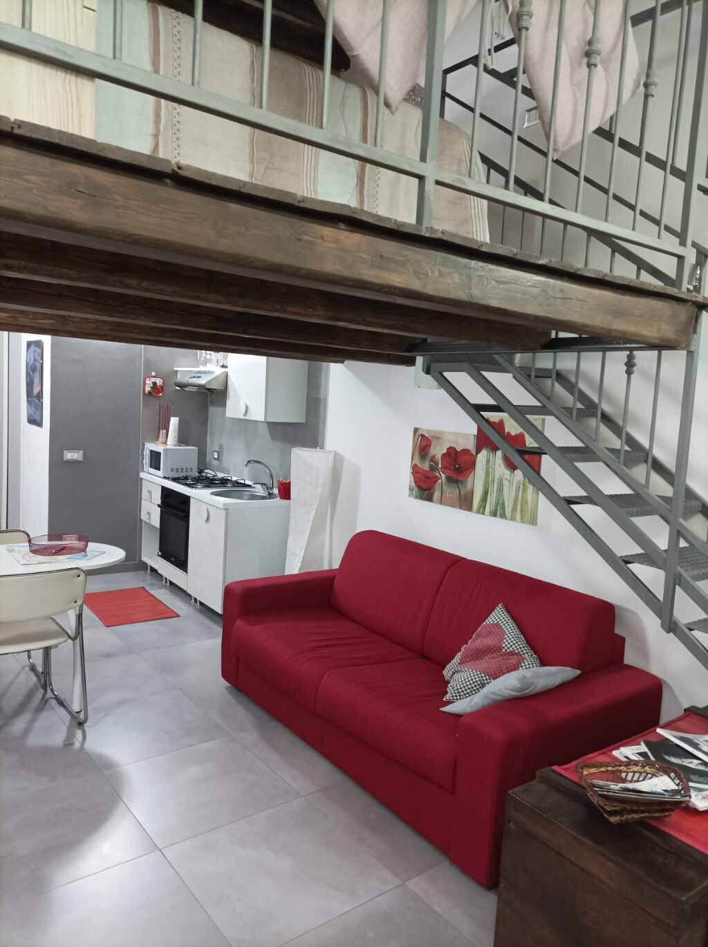 Large and bright loft in the heart of Palermo, on the third floor without an elevator of a 17th-century building, on a street that leads from Via Vittorio Emanuele to the Vucciria. The central location means that every point of interest is within walking distance, from Piazza Marina to the Cathedral, passing through the Quattro Canti. The large living room has a separate entrance, private bathroom, small kitchen and balcony overlooking Via della Loggia; it has a double bed on the mezzanine and a sofa bed.