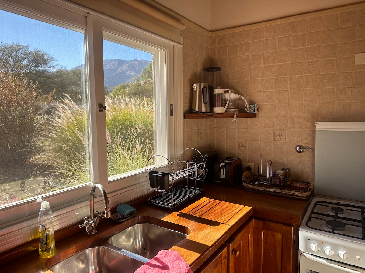 Relax in this quiet, comfortable, and elegant space, a serene corner in the mountains of Córdoba. The cozy bedroom awaits you for a restful night in the middle of the woods. Enjoy nature, the breathtaking views from every window. You can hire horseback riding, take nice walks enjoying the spectacular sunsets, walk along the nearby rivers, visit La Cumbrecita.