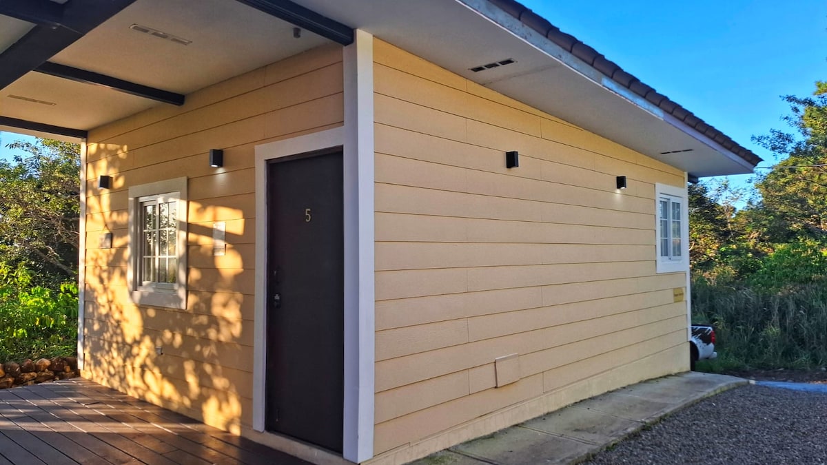 Very cozy small cottage but spacious tucked between the trees and only 7 minutes ride to downtown Boquete. The cottage has a washer and dryer and very nice finishes. A comfortable king size bed and kitchenette with all the utensils needed to prepare breakfast or a small meal. Public service transportation is available just as you open the gate and leave the premises. Wi-Fi service available and reliable. Hot water on the shower, sink and kitchen faucets.
