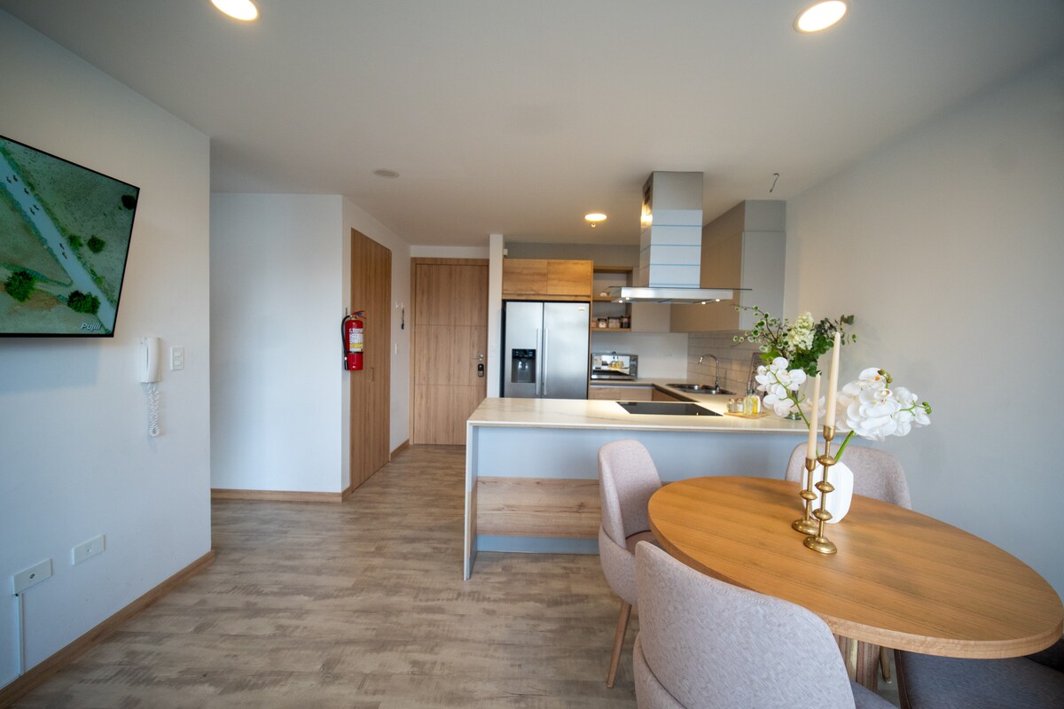 -New luxury suite, spacious, comfortable in Eco-efficient building -Pool, sauna, Turkish bath, whirlpool, gym, app to use areas (subject to reservation based on building availability) - Located in the best area of Quito, a safe area with easy access by vehicle and public transportation - Walking Score 87, close to everything on foot, more than 200 businesses (luxury restaurants, shopping malls, pharmacies, tourist sites and parks)